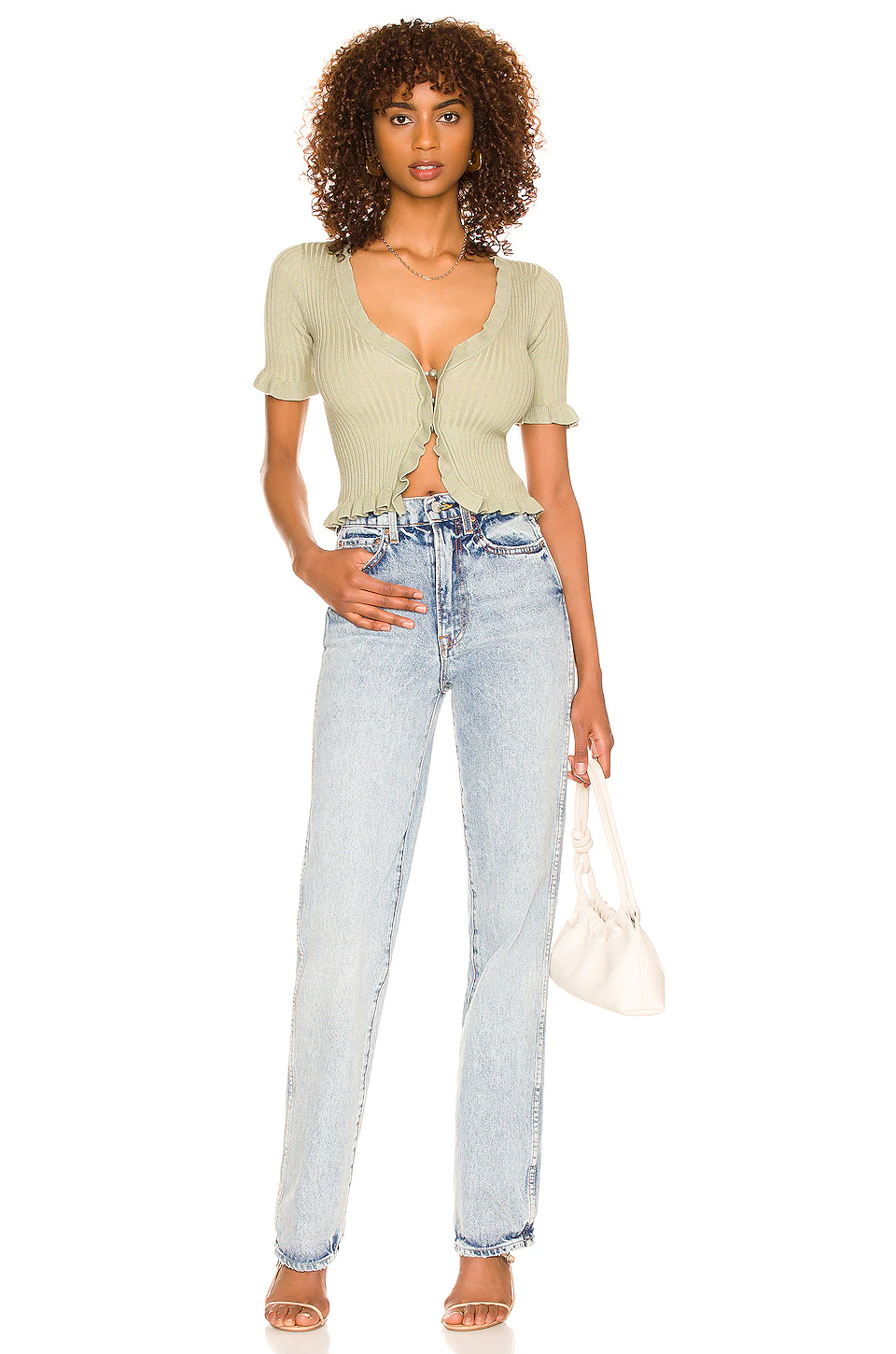 Lovers And Friends Carissa Ruffle Sweater In Matcha Green