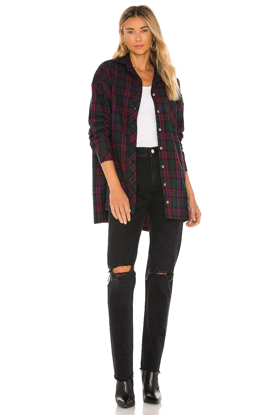 Lovers And Friends Gela Oversized Top In Green Plaid
