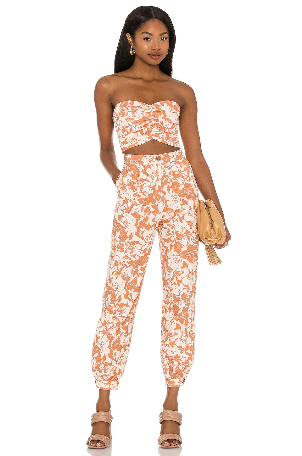 Lovers And Friends Kacey Top In Caramel Brown Floral
