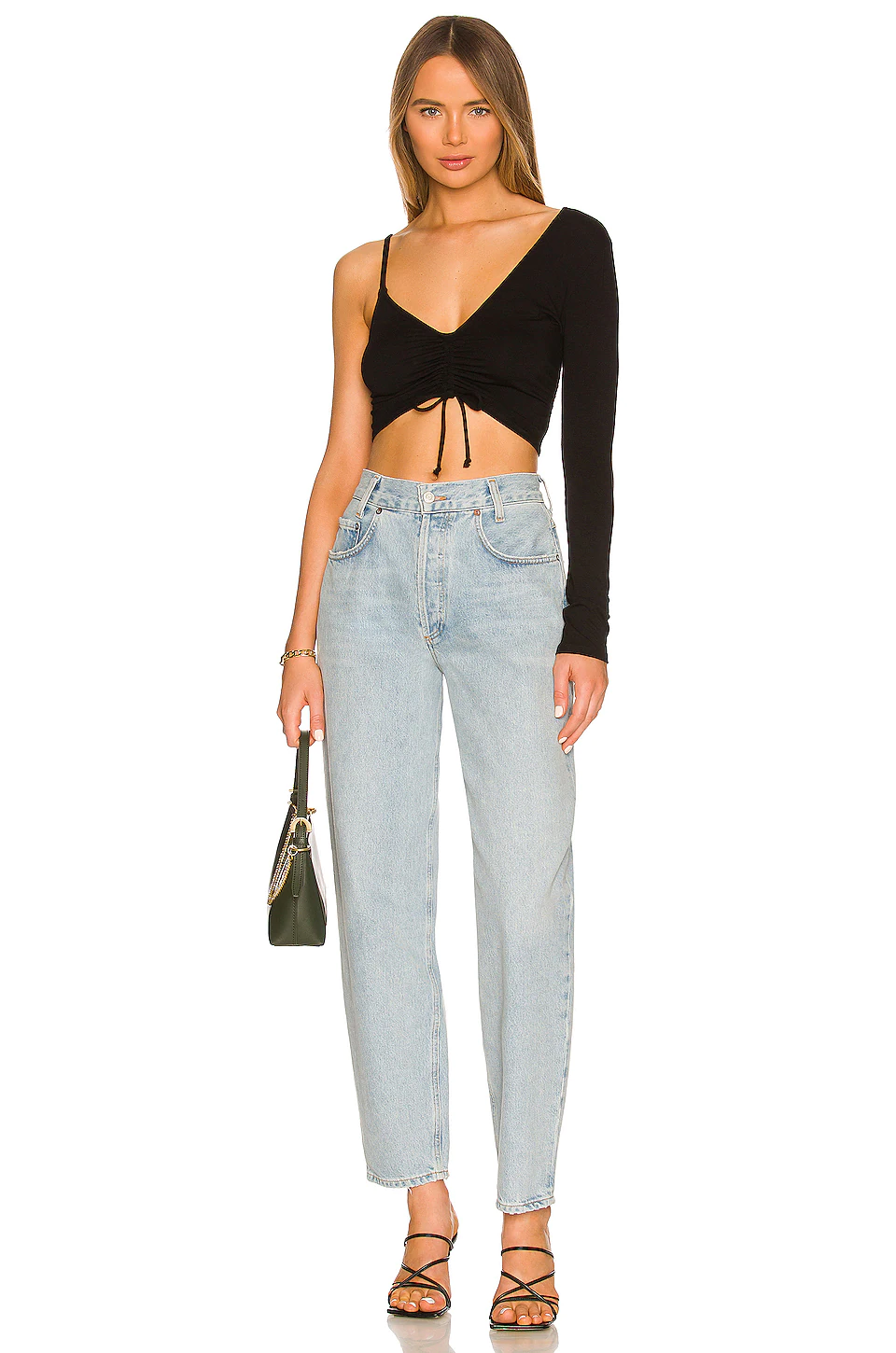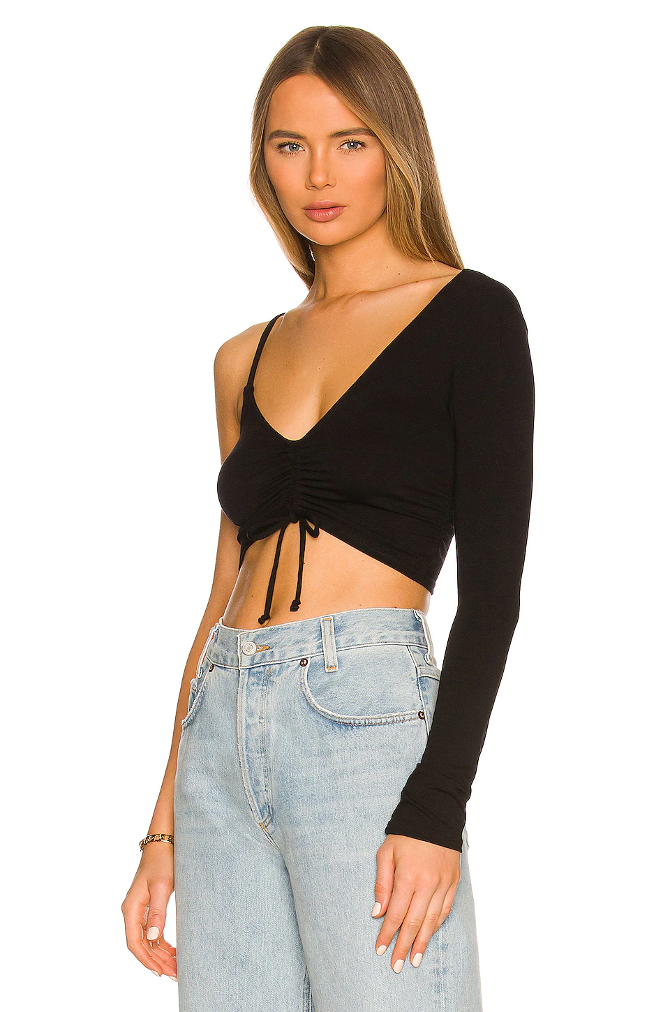 - Singular long sleeve with adjustable spaghetti shoulder strap