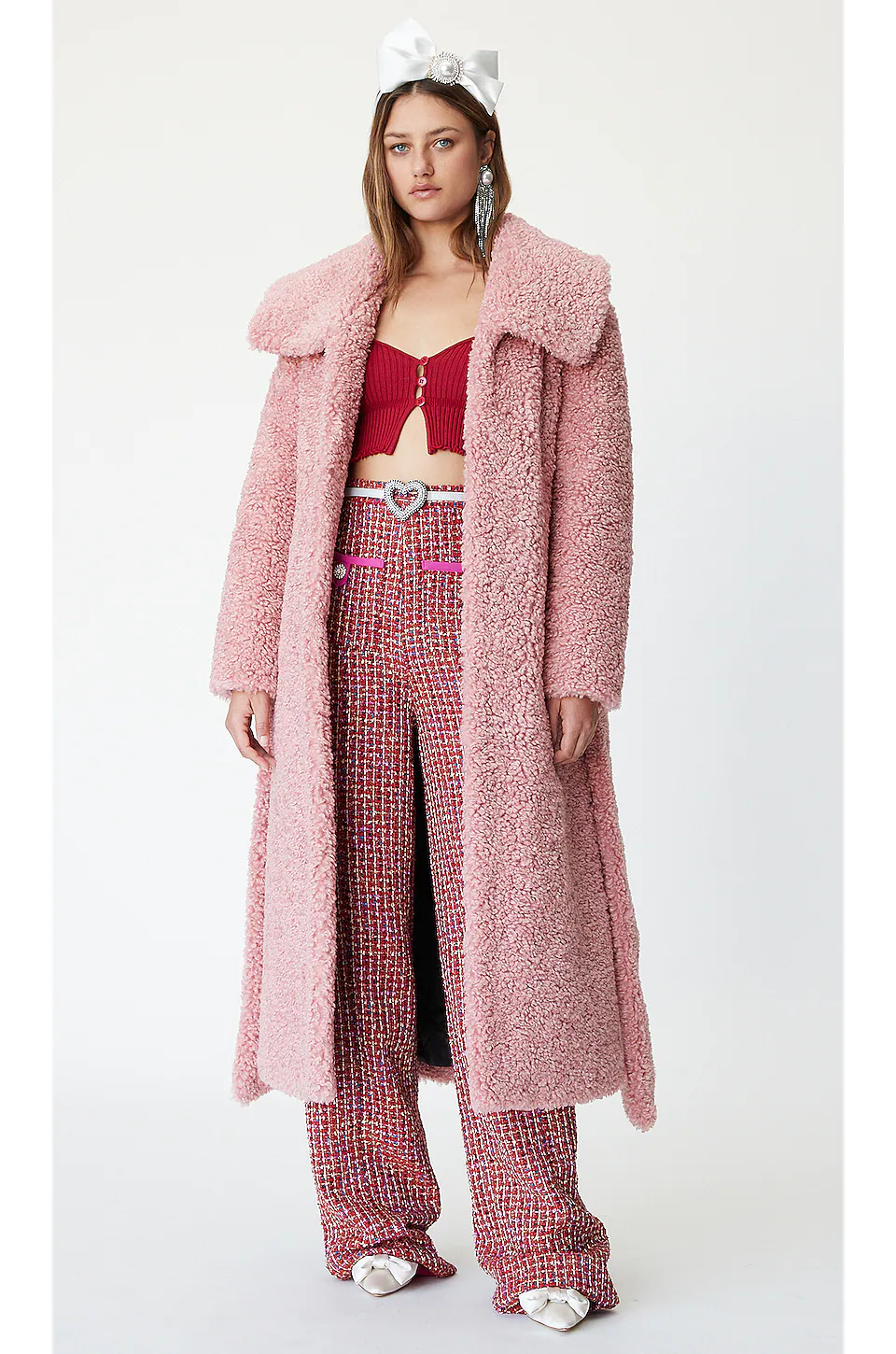 - Tweed fabric with metallic threading throughout