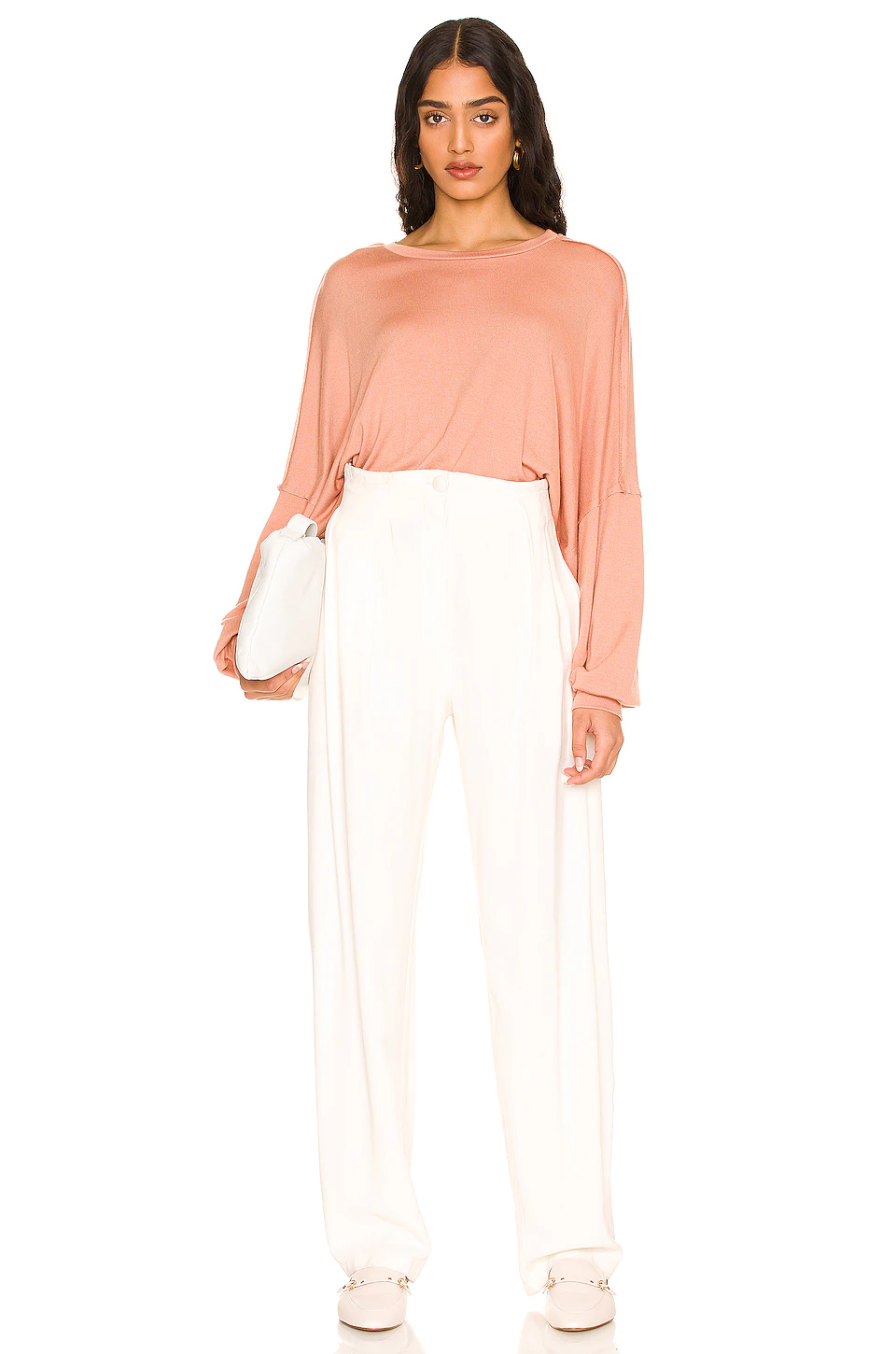 - Drop shoulder with longline sleeves and banded cuffs